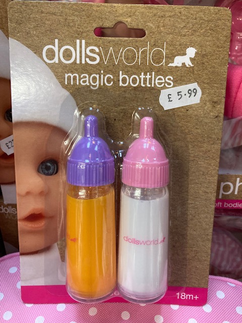 Range of baby dolls. The basic smallest little love’s start from just £9.99 and has a soft body, perfect for a very young child. Our doll Phoebe has a soft body and comes with feeding bottle and tray, and makes 16 real baby sounds. Splash baby has a vinyl body and is fully bathable, comes with a fabric nappy, vinyl duck and deluxe bathrobe, Great fun for bath time. Baby dribbles can even use the potty, and baby joy is a great size for prams and cots.