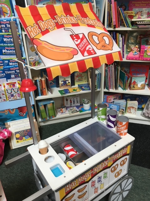 This cart doubles up as a hot dog stand or ice-cream cart by reversing the front. With all the ice-creams, sauces and snacks included that’s really good value for playing food cart vendor.