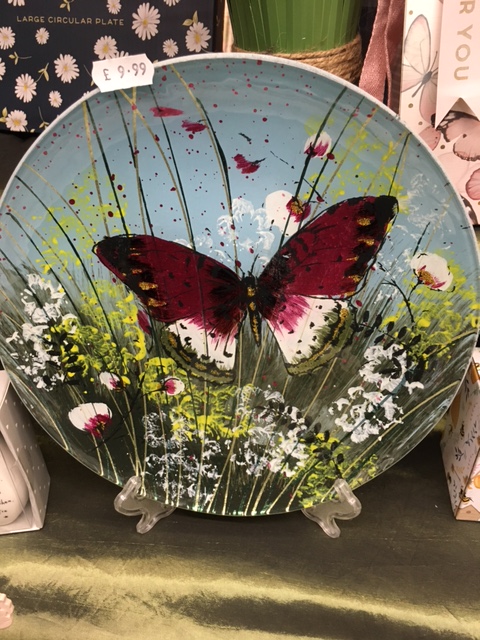 We have a range of beautiful floral glass plates amongst our selection of decorative glassware. Additionally, we sell personalised vases and glasses, which can convey your message alongside hand-painted butterflies and flowers; please order with plenty of time.