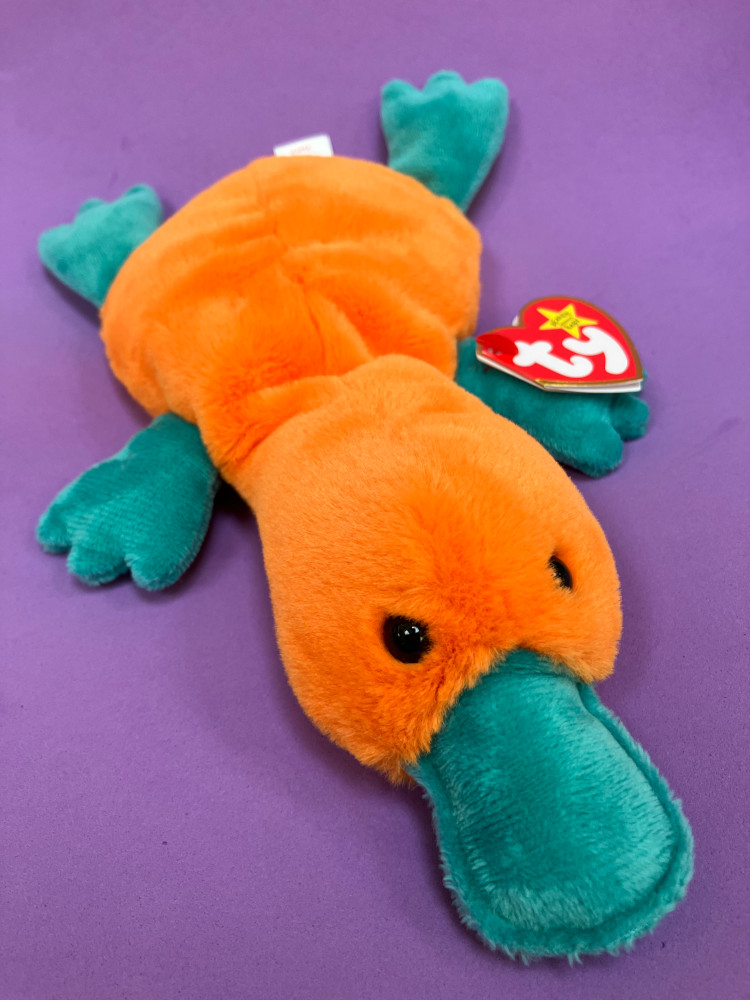 Patti II – This orange and teal platypus is described in the verse on her tag as being a very talkative creature with an extra large beak. The original Patti was a sort of shocking pink and yellow but this beanie has a charm of her own. £5.99